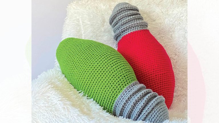 Add some festive cheer to your living room with these whimsical Christmas bulb-shaped pillows! Made entirely of single crochet stitches in a bulky weight yarn, this easy project works up quicker than you might think. You’ll have a hard time stopping after just one; you’ll be tempted to make a collection in an assortment of fun holiday colors!